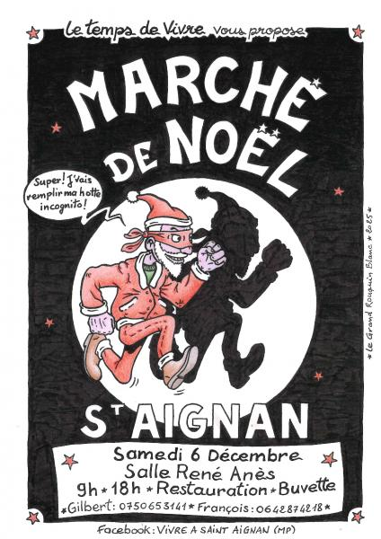Marché de Noël avec créations artisanales et produits locaux, organisé par l'association Le Temps de Vivre, de 9h à 18h à la Salle René Anès.